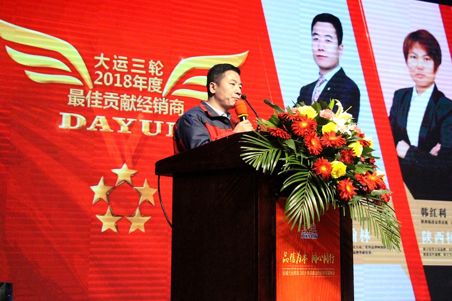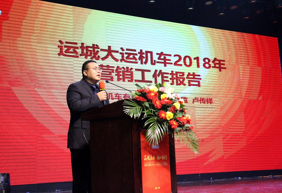獲獎經銷商代表,陜西創天商貿有限公司李彥宏先生,在經銷商發言環節中提到,2018年成績斐然,相比2017年銷量提升53%。2019年,在市場疲軟的情況下,會盡******的努力爭奪市場份額,因為大運品牌馳名中外;因為大運有自主發動機、全資獨立工廠;更因大運有能量,團隊有信心。