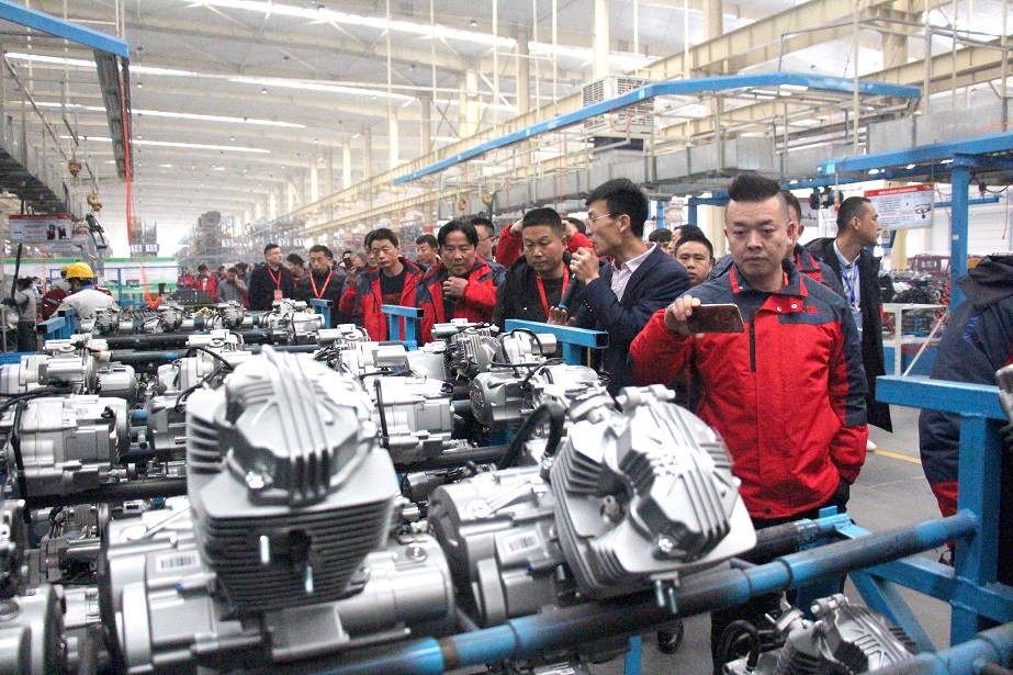 圖:經銷商及供應商參觀會議樣車及大運三輪制造工廠