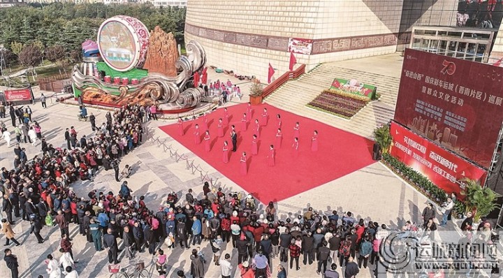 10月31日至11月2日,運城博物館南廣場上彩旗飄飄,鼓樂陣陣。在“奮進山西”國慶彩車巡展現(xiàn)場,群眾文藝表演熱火朝天。從耄耋老人到學(xué)步幼童,從機關(guān)干部到企業(yè)工人,我市社會各界爭相一睹彩車風(fēng)采,上萬名群眾共同見證了這振奮人心的難忘時刻。